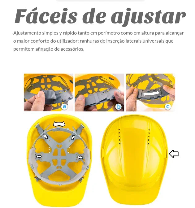 Capacete de proteção segurança industrial, fabricado segundo a norma EN-397, ideais para ser usados tanto dentro como fora de instalações industriais ou em trabalhos de rua.