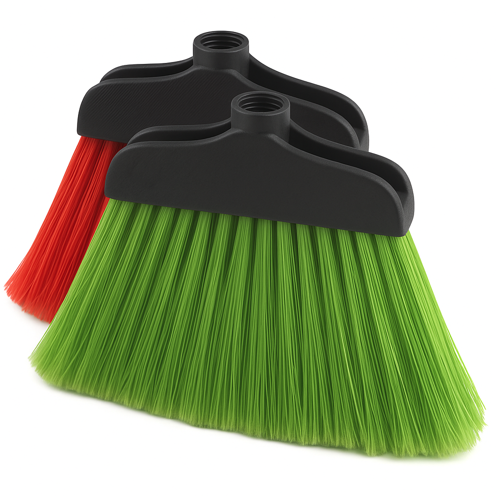 Vassoura tradicional com filamentos despontados na ponta, em nylon/pvc.