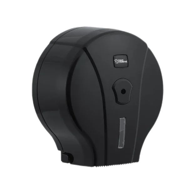 O dispensador papel higiénico jumbo preto DELFI LITE MJ1-M é compatível com rolos de papel 75M, 90M, 120M, 144M e 180M