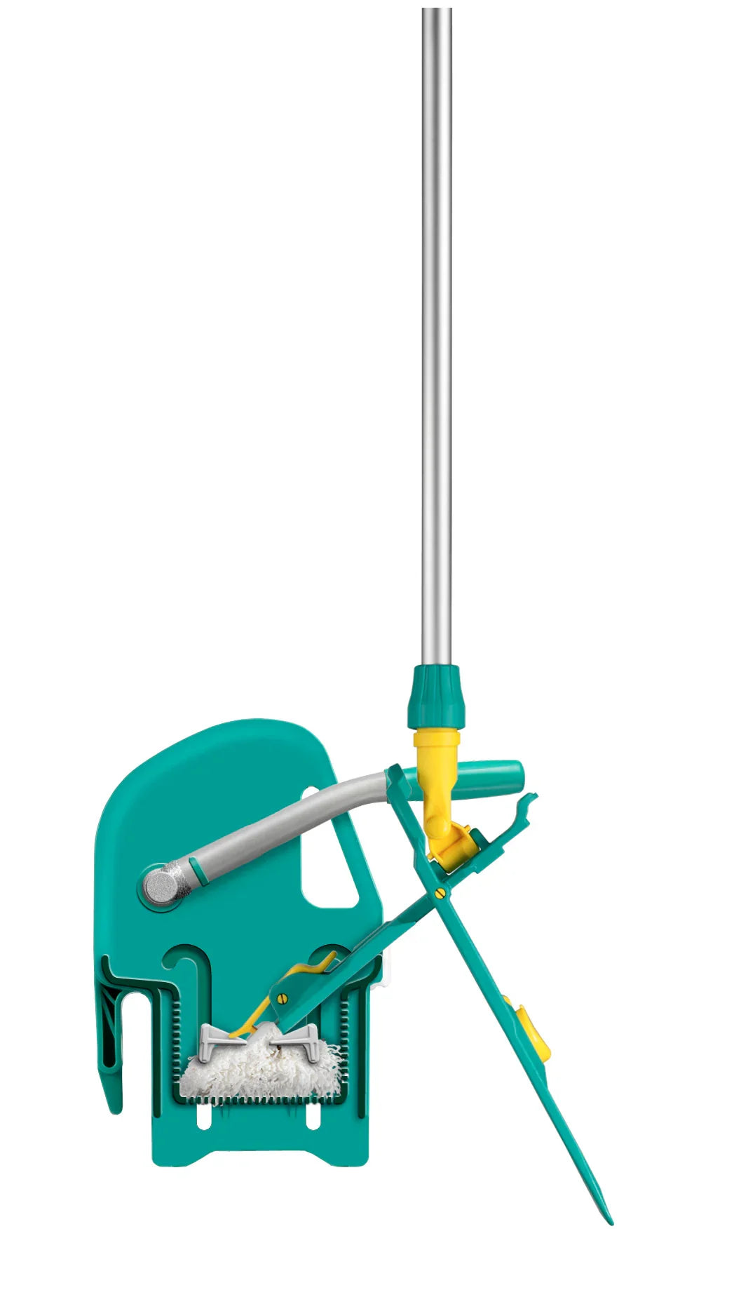 - Prático: Incluir um robusto suporte de fixação para o cabo da esfregona de forma a mantê-lo seguro em tempo de repouso.