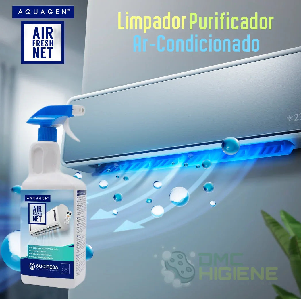 Aquagen Airfresh Net é uma especialidade Sucitesa. Um prático detergente limpador e purificador técnico para sistemas de ar condicionado.